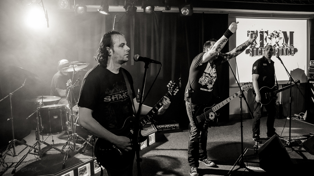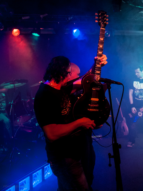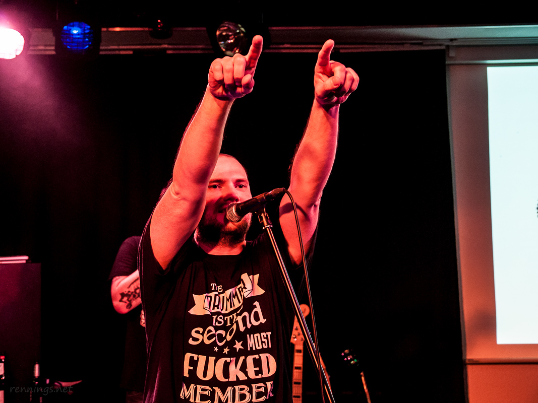 Aber zurück, denn der Abend war ja noch nicht vorbei, es kam ja noch Rotzrock: Team Suckerpunch. Wie man sie kennt, von Anfang an geradewegs auf die Fresse. Und es war ein besonderer Auftritt für die vier, denn es war das letzte Konzert in dieser Besetzung. Dave spielte sein letztes Konzert. Es gab keinen Streit innerhalb der Band und grade das machte es der Band nicht einfacher. Wenn jetzt jemand von euch also meint, Sticks schwingen kann ich, oder ihr kennt ’nen Schlagzeuger, der grad ’ne Band sucht: die Suckerpuncher suchen ’nen Drummer, setzt euch dann direkt mit denen in Verbindung.