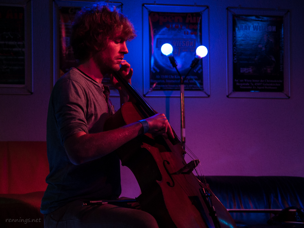 Als nächster durfte Daniel Brandl um die Gunst des Publikums werben; er kam mit seinem Cello auf die Bühne. Allerdings darf man bei Daniel nicht unbedingt ein Klassikkonzert erwarten, er spielt das Instrument auf seine ganz eigene Art (aber durchaus auch mal klassisch). Ich kannte bereits ein paar seiner Auftritte und war auch diesmal wieder gespannt, was er präsentieren würde – und enttäuscht wurde ich nicht.