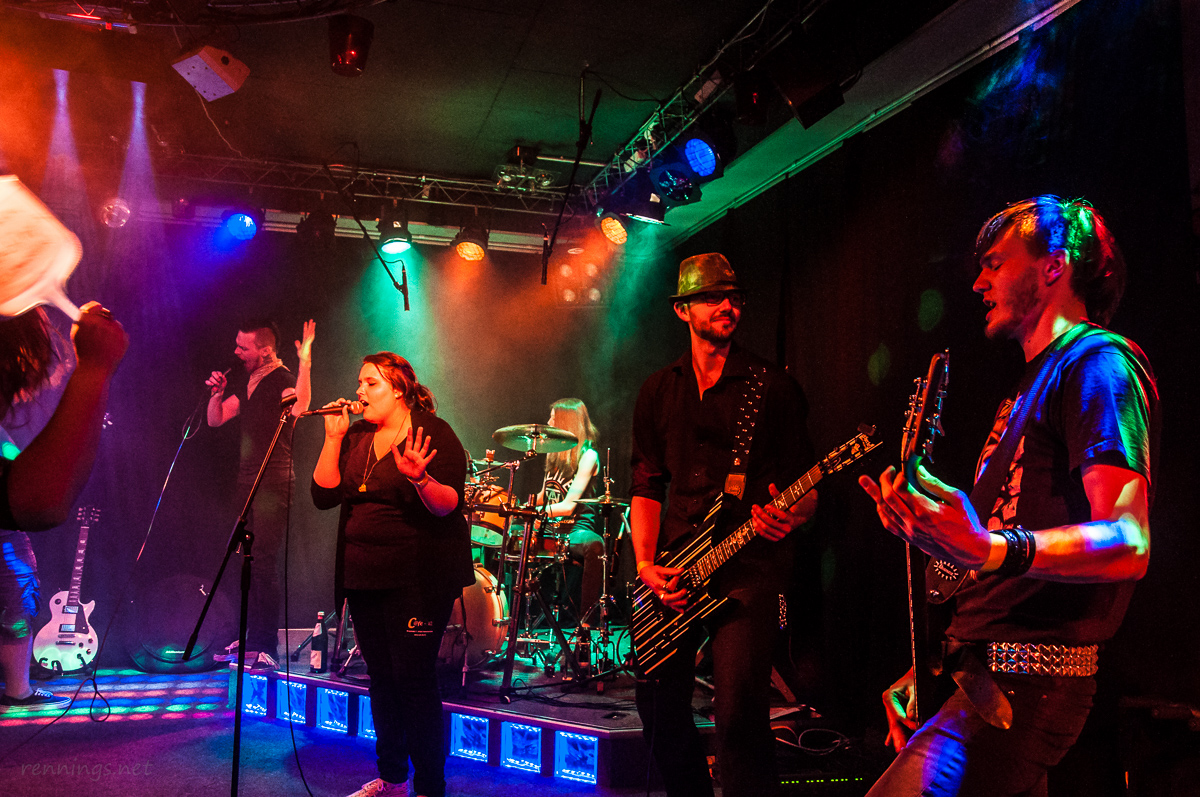 Nach einer wei­te­ren Umbau- und Frisch­luft­pau­se betra­ten dann die letz­ten Teil­neh­mer die Büh­ne: Some­whe­re Sear­ching. Eini­gen viel­leicht noch unter ihrem alten Namen »Black Mir­ror« bekannt; da zwei Band­mit­glie­der die Band lei­der wegen ihres Stu­di­ums ver­las­sen muss­ten, hat sich die Kapel­le da dann auch einen neu­en Namen zuge­legt. Alter­na­ti­ve metal mit einem fema­le/­ma­le-Duo an den Mikrofonen.